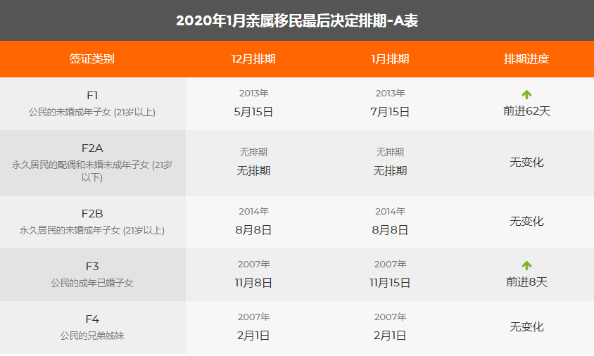 國務院公布的2020年1月綠卡移民排期公布,親屬移民穩步前進,職業移民前進緩慢,其中EB3前進一個月,幅度最大。