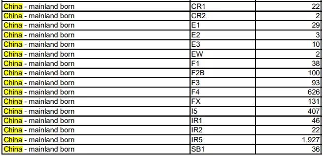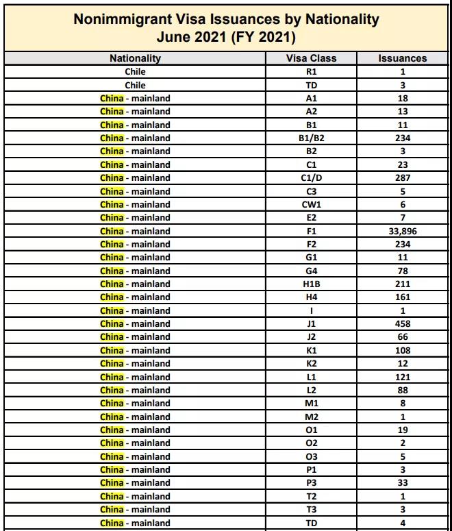 F2 F1學(xué)生簽證的配偶或者子女6月共簽發(fā)了234張簽證;
