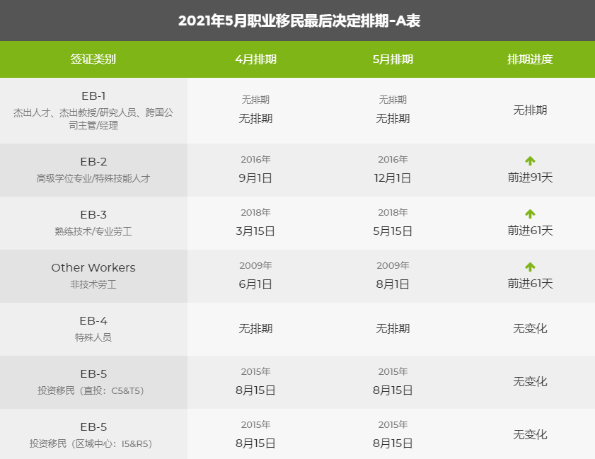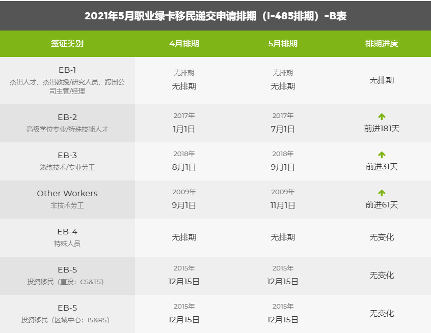 2021年5月美國移民綠卡排期表新鮮出爐!
