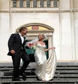 新娘露西在其父和新郎的幫助下,用一把寶劍切開了七層高的結婚蛋糕。舉行舞會后,新娘新郎一起走上南面的陽臺,露西把手中的花束拋向下面的姑娘們。在歡聲笑語中,露西的妹妹琳達.伯德接住了花束。