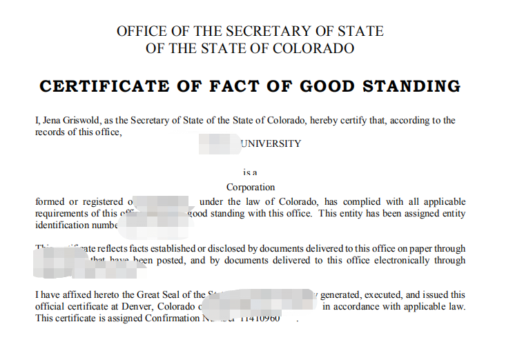 陳先生很滿意鷹飛國際的專業(yè)服務(wù),所以在3月6日便與鷹飛國際簽訂了美國公司注冊的合同,經(jīng)過15個(gè)工作日的辦理,現(xiàn)陳先生的美國科羅拉多州公司已經(jīng)注冊成功,以下是注冊證書: