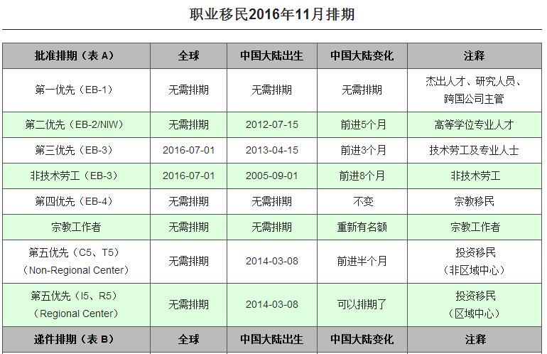 4職業移民遞件排期在上月大幅后退的情況下,本月不變甚至繼續后退(EB-5區域中心),可能因為申請人太多擠壓。