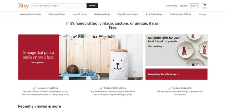 1、Etsy是全球大型的創(chuàng)意市場電商平臺,2017年買家數(shù)量3300萬,營業(yè)額30億美元。