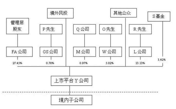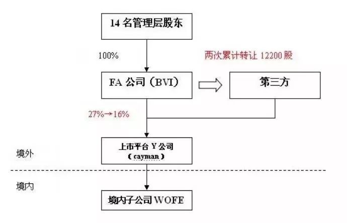 2009年至2010年,大股東FA(BVI公司)將所持上市公司Y的股份1.22億股對外轉(zhuǎn)讓,累計所得超過18億港元。而FA的上層14名管理層股東,大都居住在中國境內(nèi)。