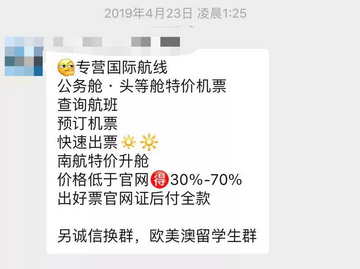 今天小編要給大家講的這個(gè)朋友圈騙局,一定要認(rèn)真看!因?yàn)橐呀?jīng)有人為此付出了慘重的代價(jià)……這個(gè)新興的騙局就是“特價(jià)機(jī)票”。