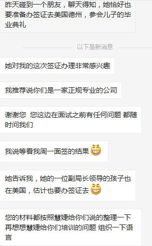 兩位老師很感謝鷹飛國際,可以這么快拿到美國簽證,激動的告知我們身邊有朋友也需要辦理美國簽證,到時候會推薦給我們。