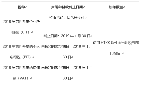 越南公司還需要繳納年度營業(yè)執(zhí)照稅,截止日期為1月30日。